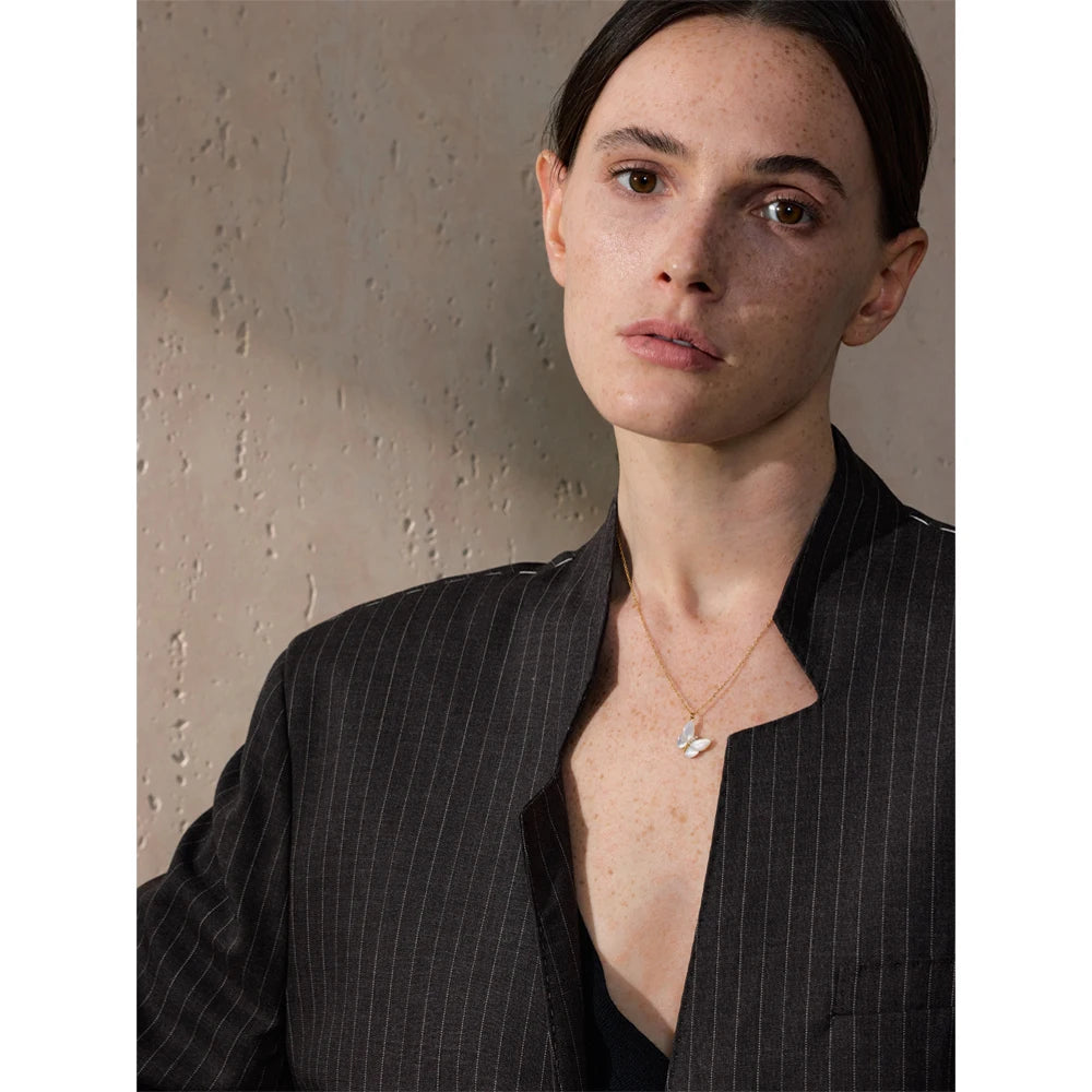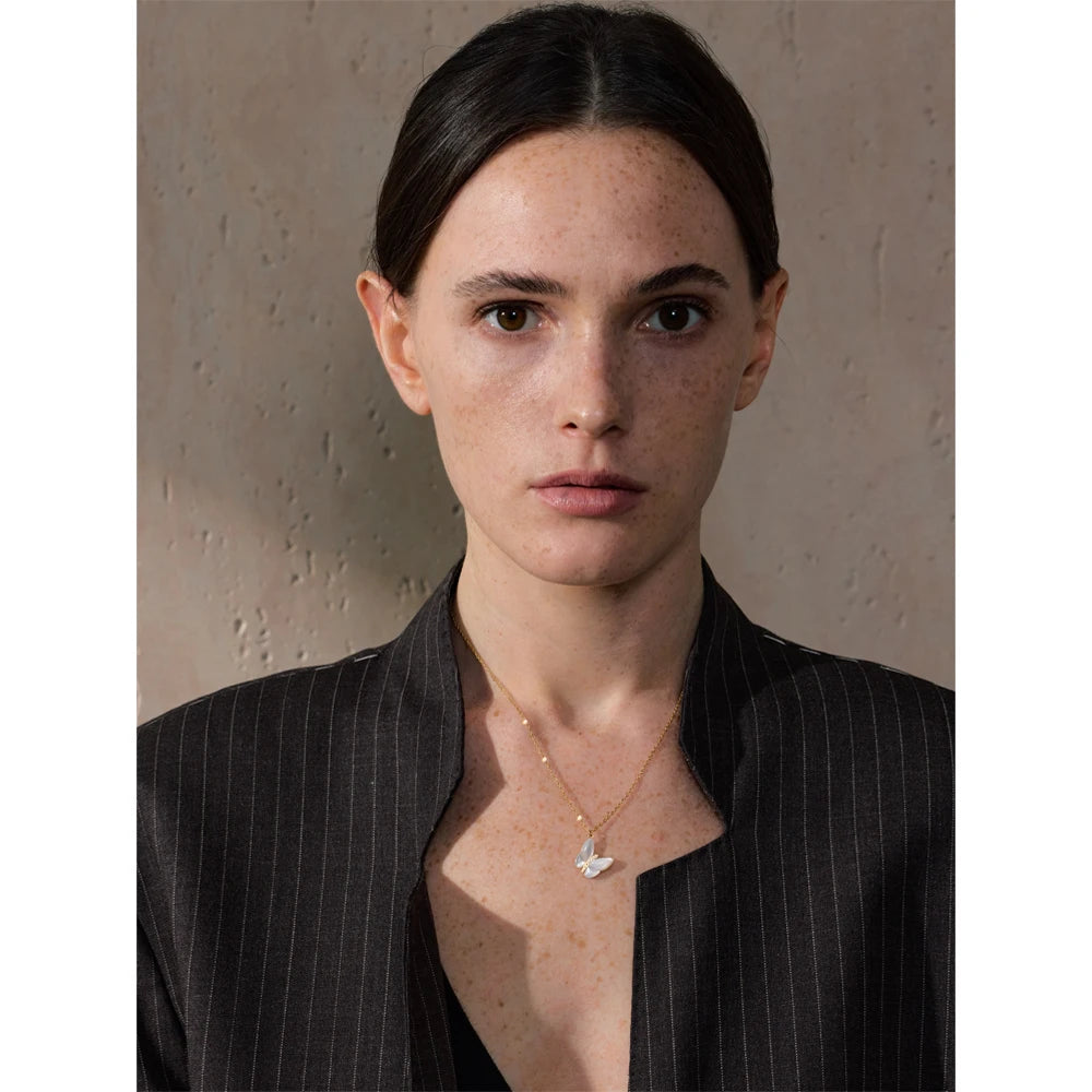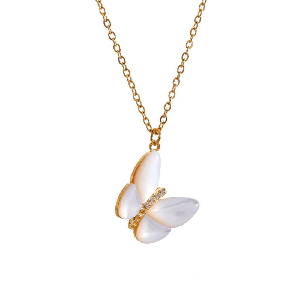 Natural shell and zircon butterfly necklace